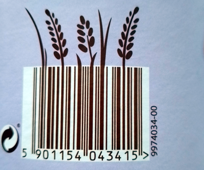 Auf dem Getreidekaffee mit Karamellaroma von Inka hat Honza diesen Strichcode entdeckt, der passenderweise mit ein paar Getreidehalmen und Ähren dekoriert ist, die direkt aus den Strichen wachsen.