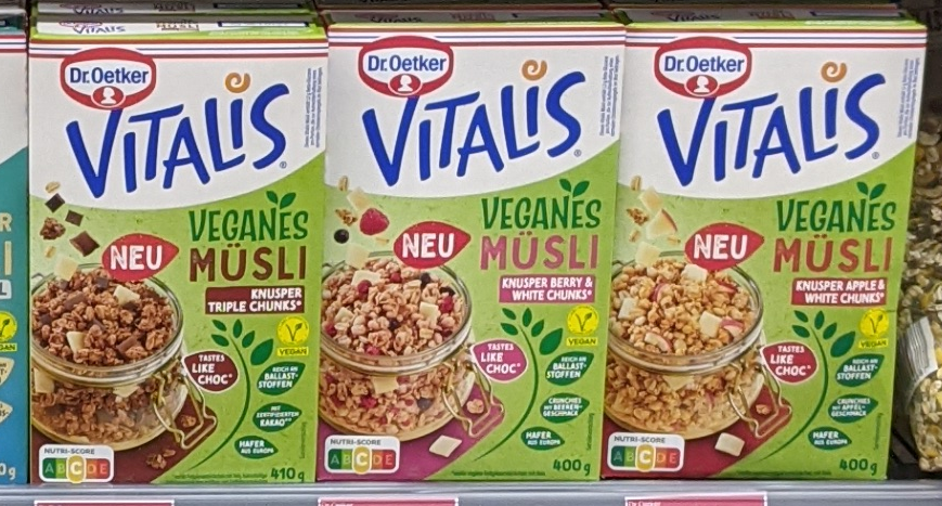 Das hat Dr. Oetker nun mit drei veganen Vitalis-Sorten geändert, die wir auch ab sofort im Regal stehen haben. Würde mich sehr wundern, wenn diese Produkte bei uns nicht laufen würden …