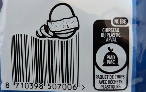 Diesen Strichcode mit einer Kartoffel, um die herum noch die abgeschälte Schale gewickelt ist, hat Ines auf einer Tüte Lays-Chips Paprika entdeckt. Okay, es war zugegebenermaßen eher nur ein Tütchen mit den 27,5 Gramm.