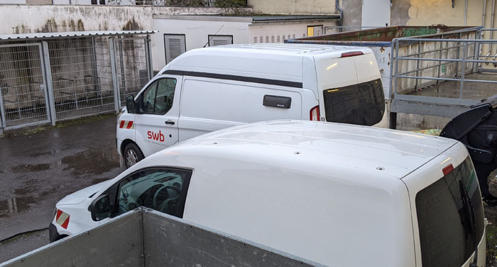 Aufgrund der kleinen Trafostation, die sich hier im Hof befindet, haben auch die Stadtwerke (swb wie Wesernetz) einen Schlüssel für das Tor zu unserem Hof.