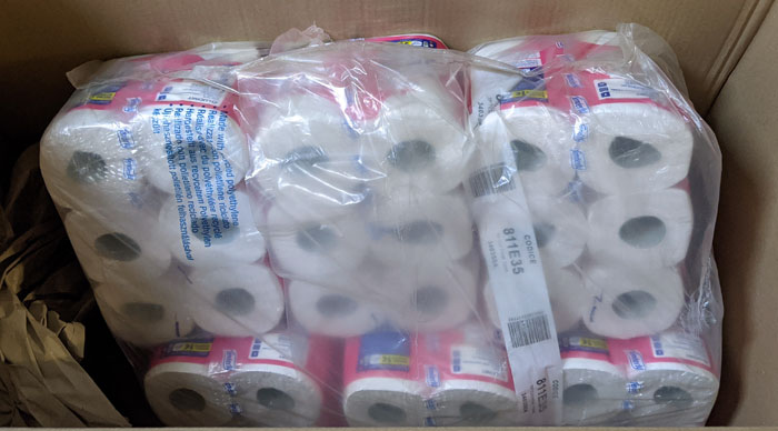 Ein Kunde wollte einen leeren Karton haben. Auf der Suche nach einem passenden entdeckte er bei der noch zu packenden Tiefkühlkost in einem der Kühlbehälter einen Karton, der ihm gefallen würde.
