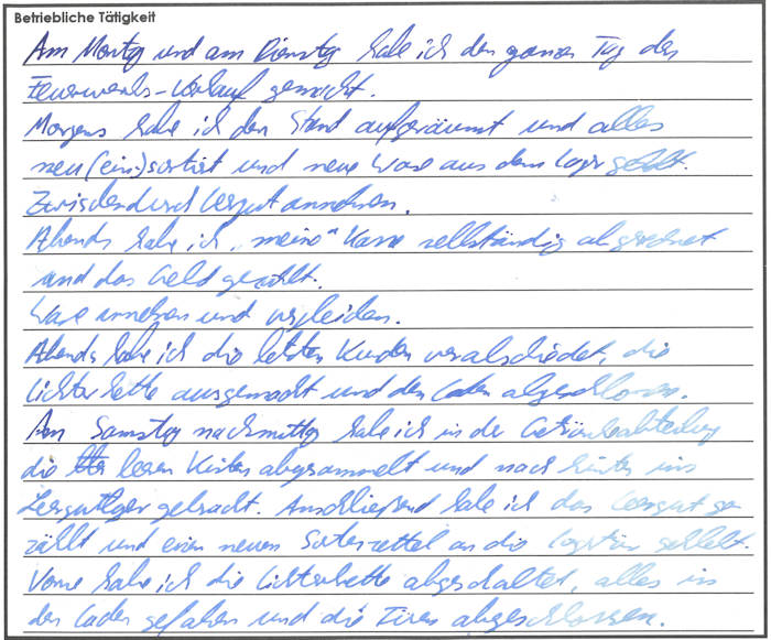 Die letzte Woche des Jahres 1997 war wohl so aufregend gewesen, dass ich den Teil mit der Lichterkette und dem Abschließen des Ladens gleich zweimal geschrieben habe. Hat vermutlich bis heute niemand gemerkt. Wirklich niemand. Mein Ausbilder hat die Berichte maximal grob überflogen und die Leute vom Prüfungsausschuss der Handelskammer haben sich das ganz sicher auch alles nicht durchgelesen …