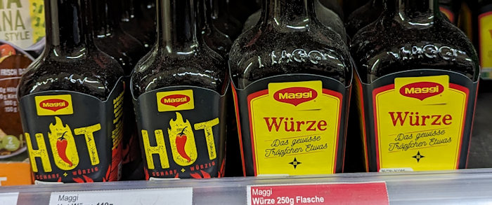 Einen Artikel, den viele noch gar nicht kennen, aber der nicht mehr so ganz neu ist: Maggi Würze "hot". Wir haben sie schon eine ganze Weile im Sortiment und ich finde diesen Artikel einfach nur genial. Es ist das typische Maggi-Würze-Aroma, aber in scharf.
