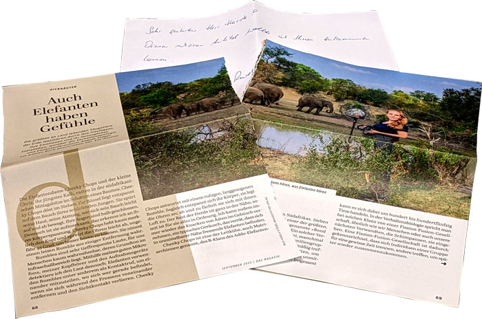 Vor ein paar Tagen kam hier ein dicker Briefumschlag mit Post von Blogleserin Ruth an. Der Inhalt bestand aus einem mehrseitigen Artikel über Elefanten.