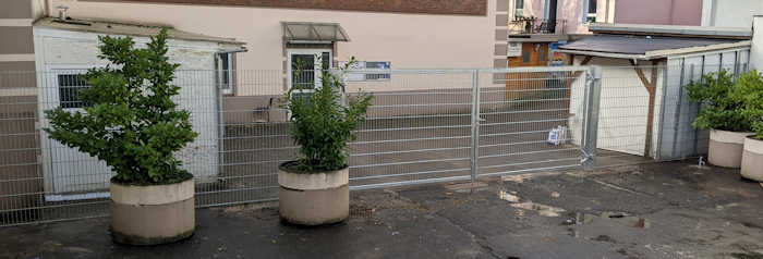 Heute haben die Zaunbauer noch ein paar abschließende Arbeiten erledigt. Die Tore wurden richtig eingestellt, der Übersteigschutz wurde installiert und sie haben noch mehrere Hülsten und Halterungen im Boden befestigt, mit denen man die Tore feststellen kann. Jetzt muss mein Schlüsseldienst-Nachbar nur noch ein Dutzend Kopien der Schlüssel machen und dann können all unsere mit dem Rad oder Auto kommenden Mitarbeiter damit ausgestattet werden.