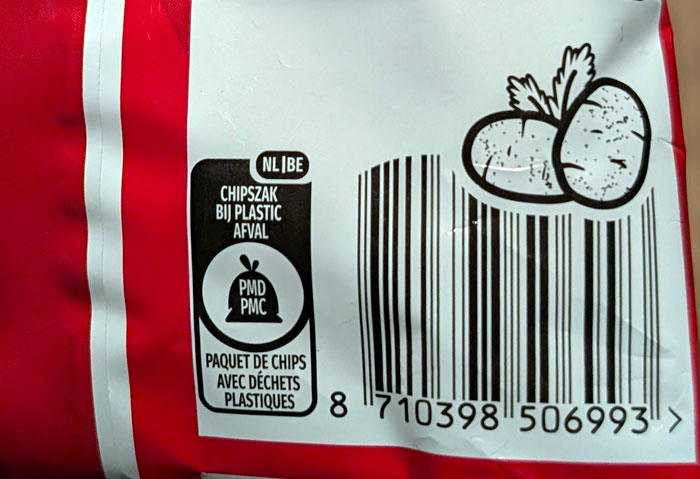 Fundstück von uns auf einem kleinen Tütchen Lay's "Naturel" Chips aus den Niederlanden: Ein Strichcode mit zwei