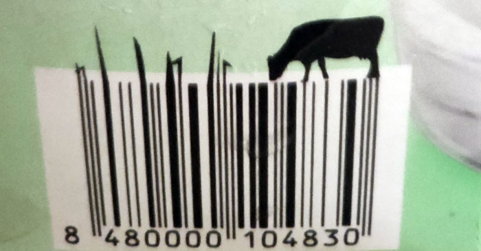 Auf der laktosefreien, entrahmten Milch von Hacendano, einer Eigenmarke der spanischen Supermarktkette Mercadona, hatte Melanie diesen Strichcode mit einer Kuh auf der Weide, die aus den Strichen wächst, entdeckt.