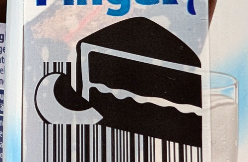 Wieder mal eine Strichcode-Zusendung von Susanne. Diesen mit einem Tortenstück und einem Marillen-Viertel dekorierten Strichcode hat sie auf einer Packung Kinder-Pingui in der Sorte "Sachertorte" entdeckt.