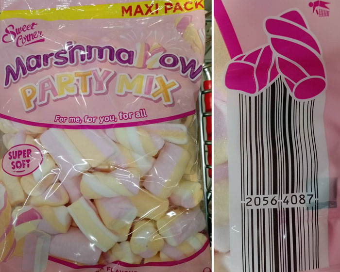 Fundstück von Susanne auf den holländischen Fruchtgummis der Marke "Autodrop". Vielen Dank für die Zusendung. Die schräg abgeschnittenen Strichcodes sind wenig spektakulär (noch weniger als sonst), aber das Drumherum ist durchaus erwähnenswert: