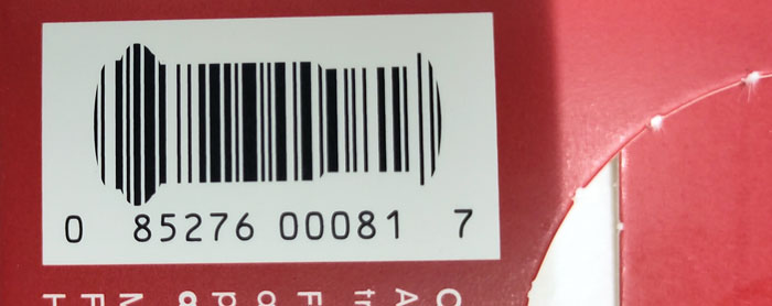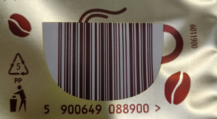 Auf den Schokodrinks von Mokate hatte Honza diesen Strichcode mit Spritzern entdeckt. Je nach Sorte (Himbeere oder Banane) in pink oder gelb gefärbt. Vielen Dank für die Zusendung.