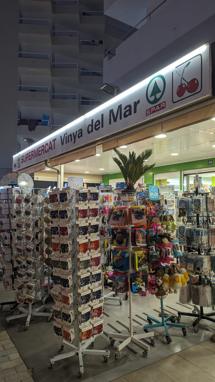 Diesen SPAR-Markt finden man im Osten Mallorcas in Cala Millor. Dies ist wohl die Seitenansicht, da links im Bild schon Ständer mit Spielzeug, Souvenirs oder anderem Gedöns stehen und sich dort vermutlich der Eingang befindet: