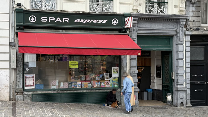 Irgendwann kam ich darauf. Wie hier auch bei Google Street View zu sehen ist, ist das Gebäude auf dem Foto nicht der eigentliche SPAR. Der befindet sich ein paar Meter weiter rechts. Auf diesem Haus ist nur die Werbung zu sehen.