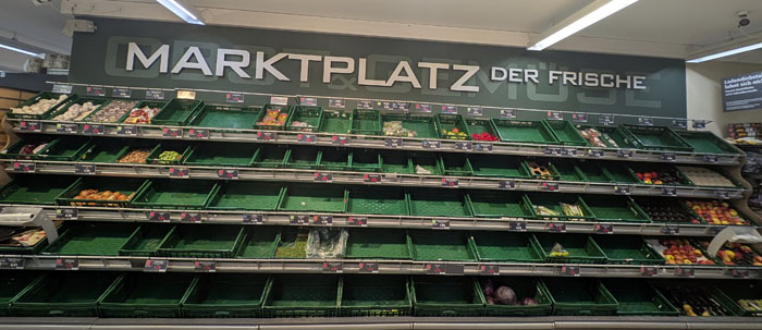 Es hätte mir auch gestern Morgen beim Besuch hier aufgrund des Fehlalarms auffallen können, aber da hatte ich gar keine Augen für die vielen leeren Kisten in der Gemüseabteilung.