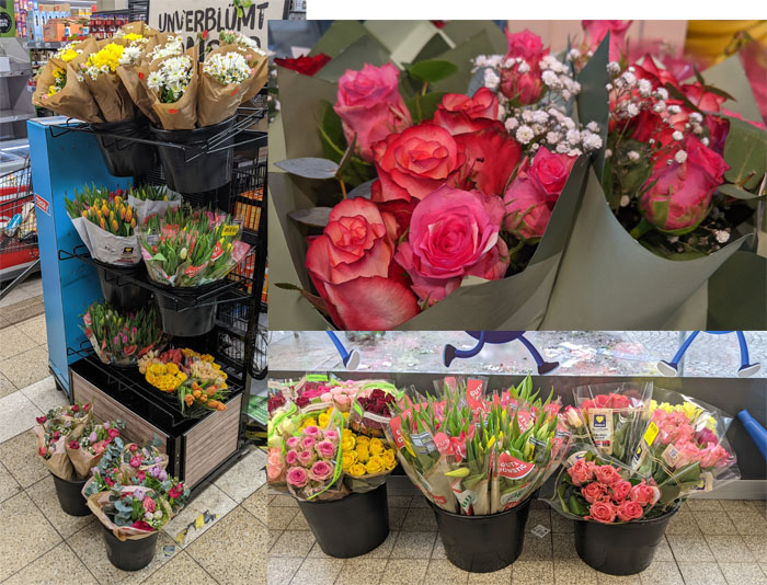 Läden mit eigener Blumenabteilung oder einem vorgelagerten Blumenladen werden über die "kleine" Auswahl lachen, für uns war die Anzahl an Schnittblumen, die ich vor dem Valentinstag bestellt hatte, schon außergewöhnlich groß. Die Kollegen lachten schon über mich: "Da brauchen wir zu Montag wohl keine zu bestellen, da können wir die ganzen Reste reduzieren."