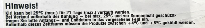 Wir haben einen Aufsteller mit "Kiri" (Schmelzkäse aus Frischkäse) in den Laden gestellt. ich hatte mich bei der Bestellung schon etwas gewundert, da die Ware ja eigentlich gekühlt werden muss, aber es gibt da einen Workaround, der auf einem großen Aufkleber an dem Display erklärt wird.