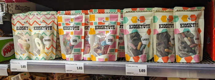 Die "Kiosktüten" sind inzwischen übrigens geliefert und im Süßwarenregal platziert worden. Die Muster hatten wir als Platzhalter ins Regal gestellt und nach kürzester Zeit waren sie bereits verkauft. Unter der Prämisse bin ich an dieser Stelle optimistisch, dass wir diese Artikel hier gut verkaufen werden.