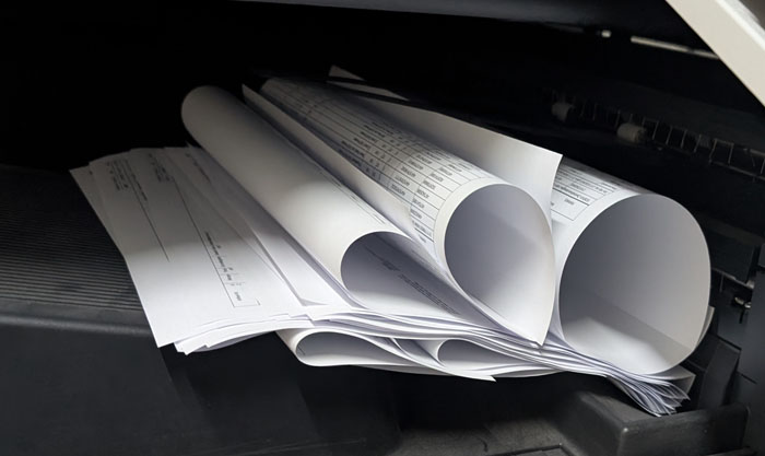 Wie soll man so arbeiten können? Es ist nicht annähernd unterhaltsam, mehrseitige Dokumente vor dem Zusammenheften erst einmal in die richtige Reihenfolge zu sortieren und irgendwie wieder in Form biegen zu müssen. :-(